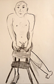 Naaktmodel tekenen van een mannelijk naaktmodel tijdens vrijgezellenfeest in Amsterdam